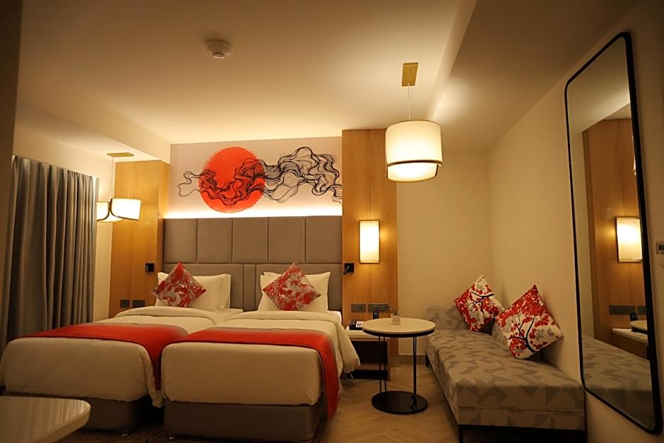 The air-conditioned suite has 1 bedroom and 1 bathroom with a bath or a shower and a hairdryer. This suite features a wardrobe, a safe deposit box, a TV and city views. The unit has 1 bed.